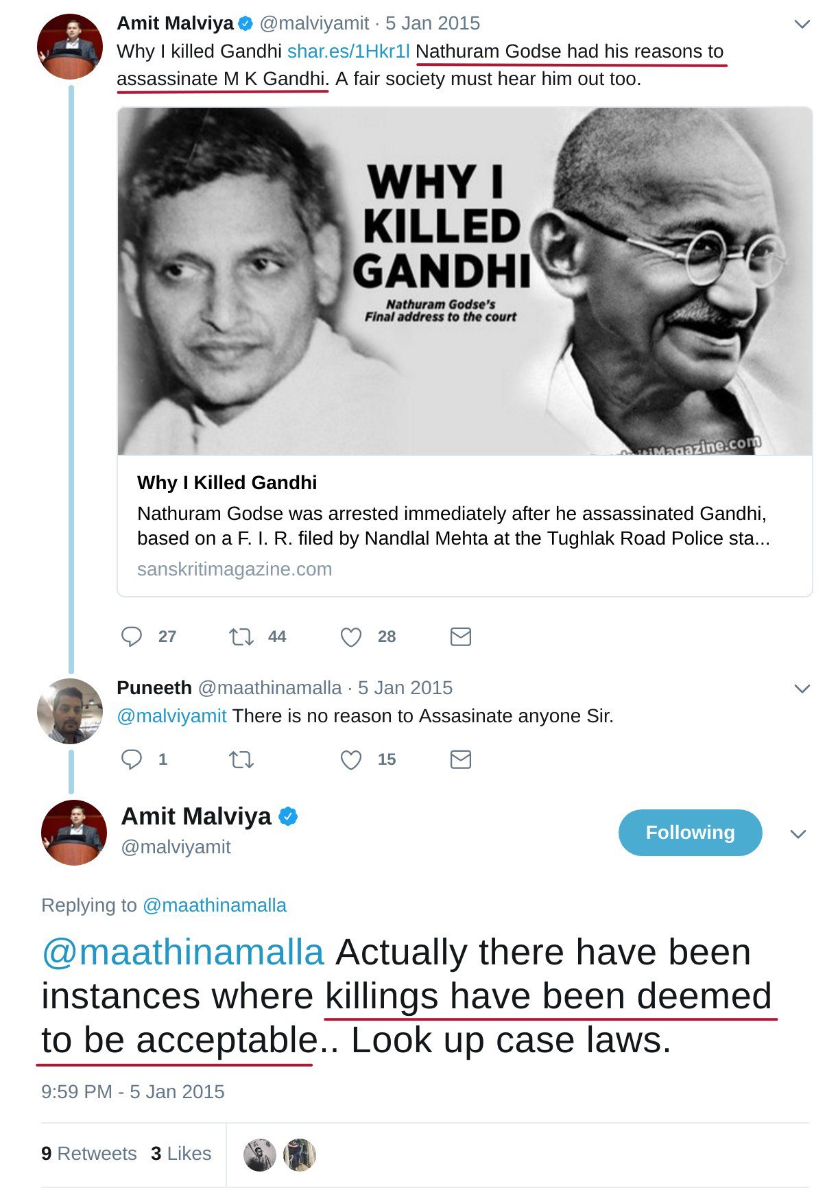 India: Nathuram Godse had his reasons to assassinate Gandhi - 2015 Tweet from Amit Malviya Head of BJP's National IT cell
