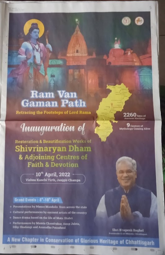 India: Full page Advertisement for 'Ram Van Gaman Path' by a Congress Party led Govt spluging tax payers money over the Hindu God Rama ... are they competing with some one