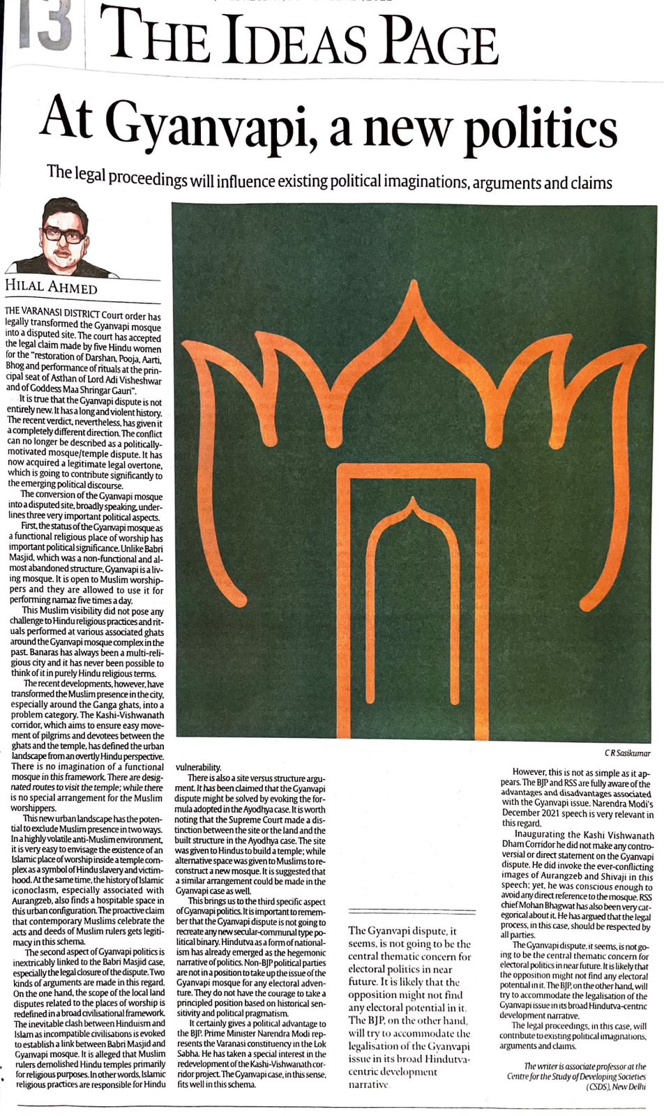 It is true that the Gyanvapi dispute is not entirely new. It has a long and violent history. The recent verdict, nevertheless, has given it a completely different direction. The conflict can no longer be described as a politically-motivated mosque/temple dispute. It has now acquired a legitimate legal overtone, which is going to contribute significantly to the emerging political discourse.